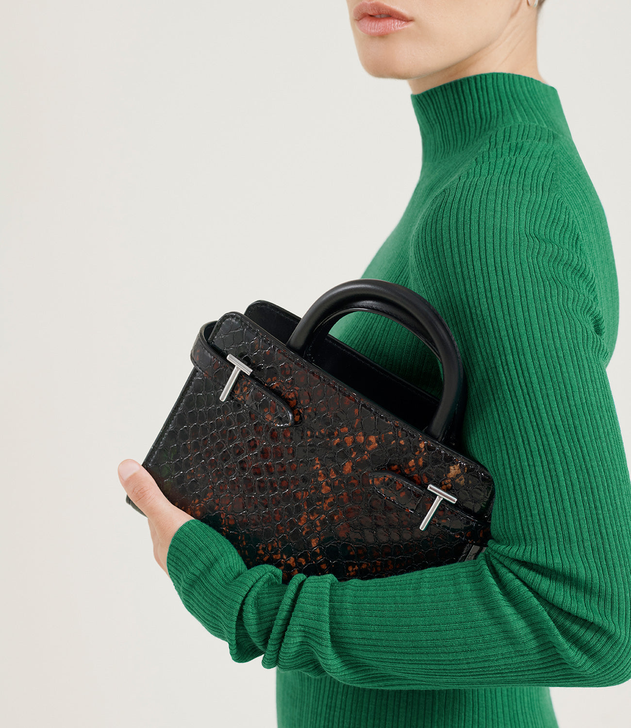 Cuir signature exclusif de notre Maison, embossé avec des lettres T microscopiques créant un motif distinctif et intemporel.