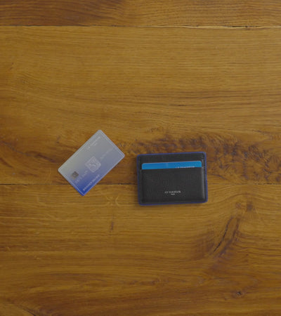 Porte-cartes avec liseré bord franc bleu signature. Sécurité anti-RFID.